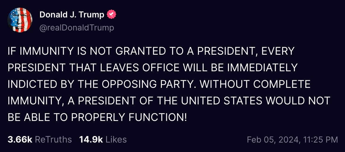 and this just in: no immunity for Trump