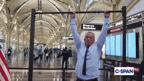oh look, they brought an actual pull-up bar with them for the dog-and-pony show. let’s watch Bobby make a complete ass of himself.