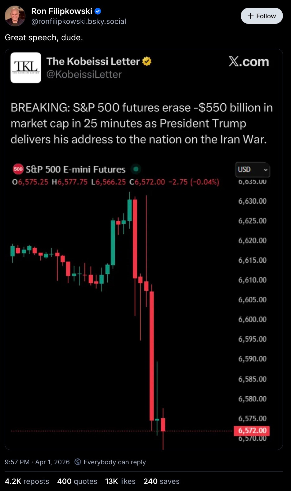 oh dear. market futures cratered — before Donny even finished speaking.