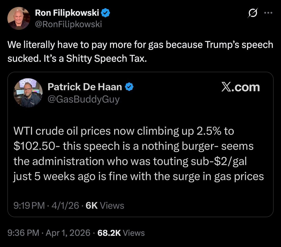 what in the hallowed name of Magical Thinking Jesus is this everybody-gets-a-pony fairy tale nonsense? what the fuck is Donny babbling about? on what planet is the Strait of Epstein™ going to ‘open up naturally,’ enabling gas prices to ‘rapidly come down’?