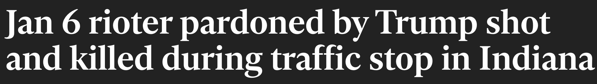 An Indiana man who received a pardon from Donald Trump for his participation in the January 6, 2021, riot at the U.S. Capitol was fatally shot by a sheriff’s deputy during a traffic stop on Sunday, according to law enforcement authorities.