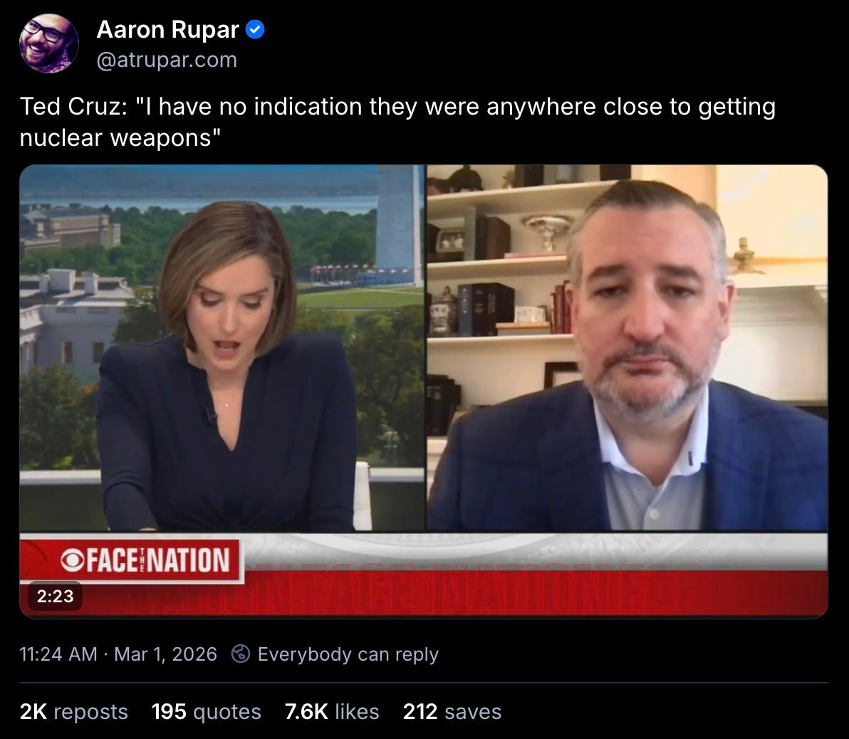 Ted Cruz: “I have no indication they were anywhere close to getting nuclear weapons.”