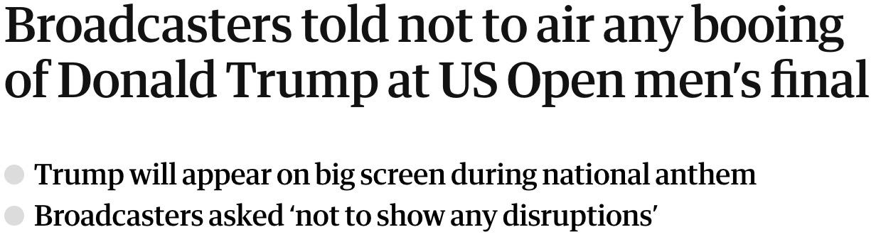 US Open broadcasters have been asked not to show any negative crowd reactions to Donald Trump at Sunday’s men’s final.