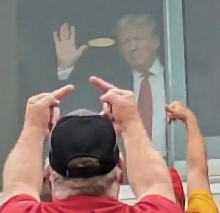 the fact is, heckling Donny and giving him the finger at sporting events is a sacred tradition as old as Donny himself.