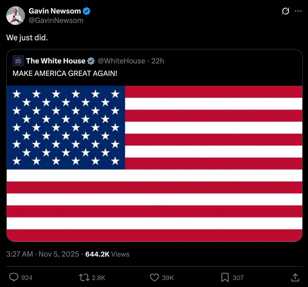 the passing of Prop 50 in California was a huge fucking win, allowing the Dem-controlled Legislature to draw new congressional maps for the next three election cycles.