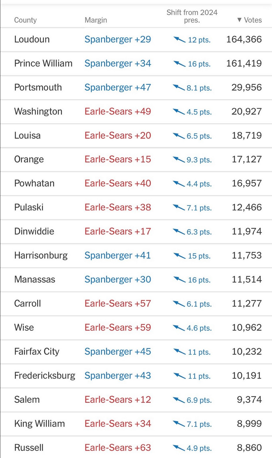 look at the Virginia governor’s race. every county in VA — even the ones Spanberger didn’t win — shifted blue.