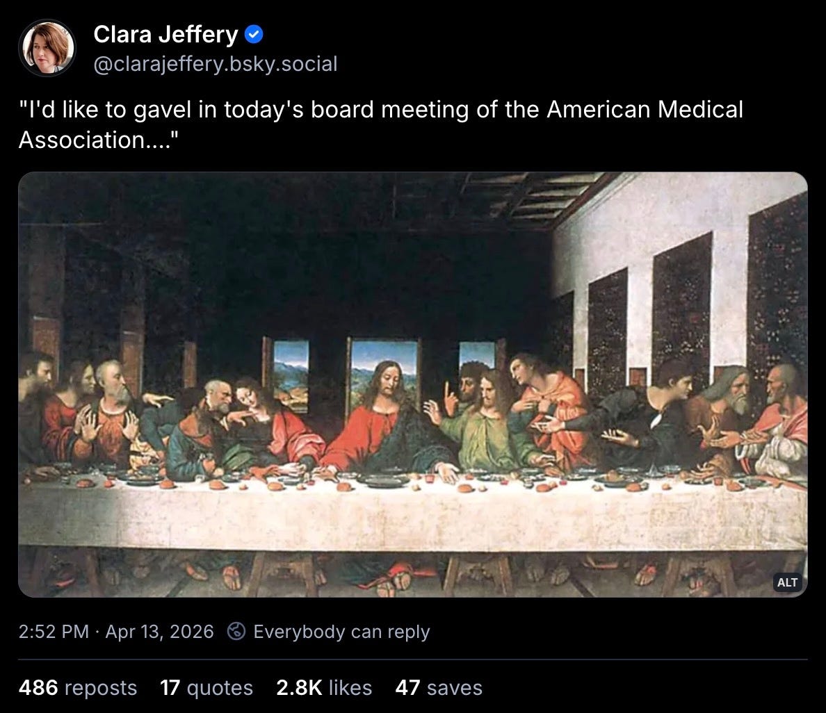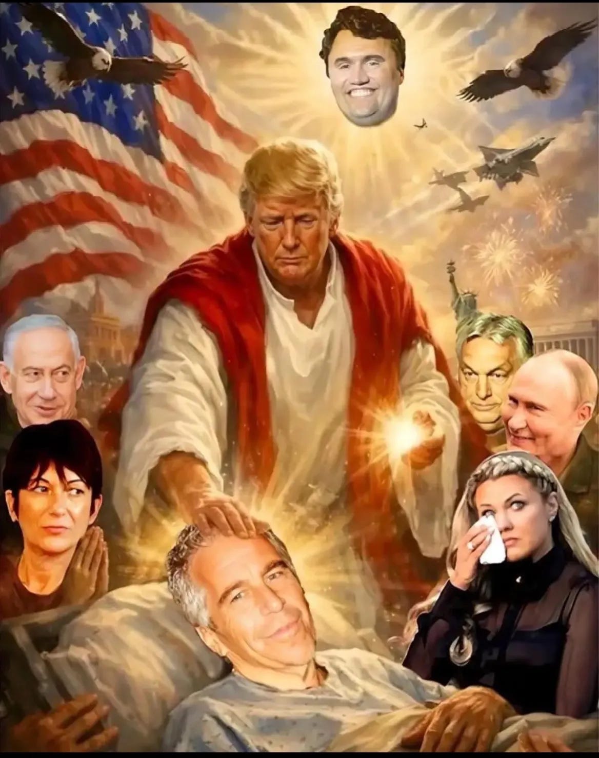 then there was that whole day-long escapade where Donny posted some bugfuck AI slop of himself tarted up as Jesus, and then — shocker of shockers! — got dogpiled by his own normally-loyal evangelicals, who were outraged that Dear Leader would ever do such a thing, causing Donny to delete the post and try to pretend it never happened.