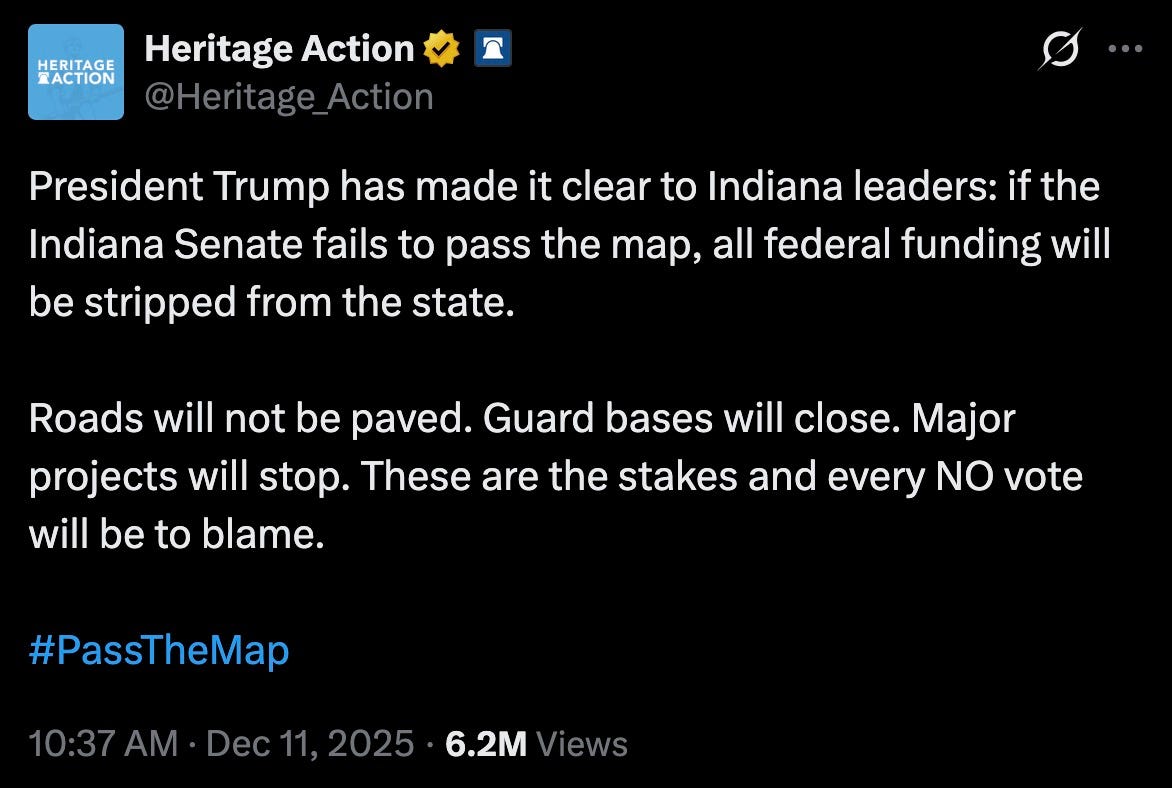 even after all that, Indiana’s Senate Republicans were all ‘here you go, Donny. eat a giant bag of dicks.’