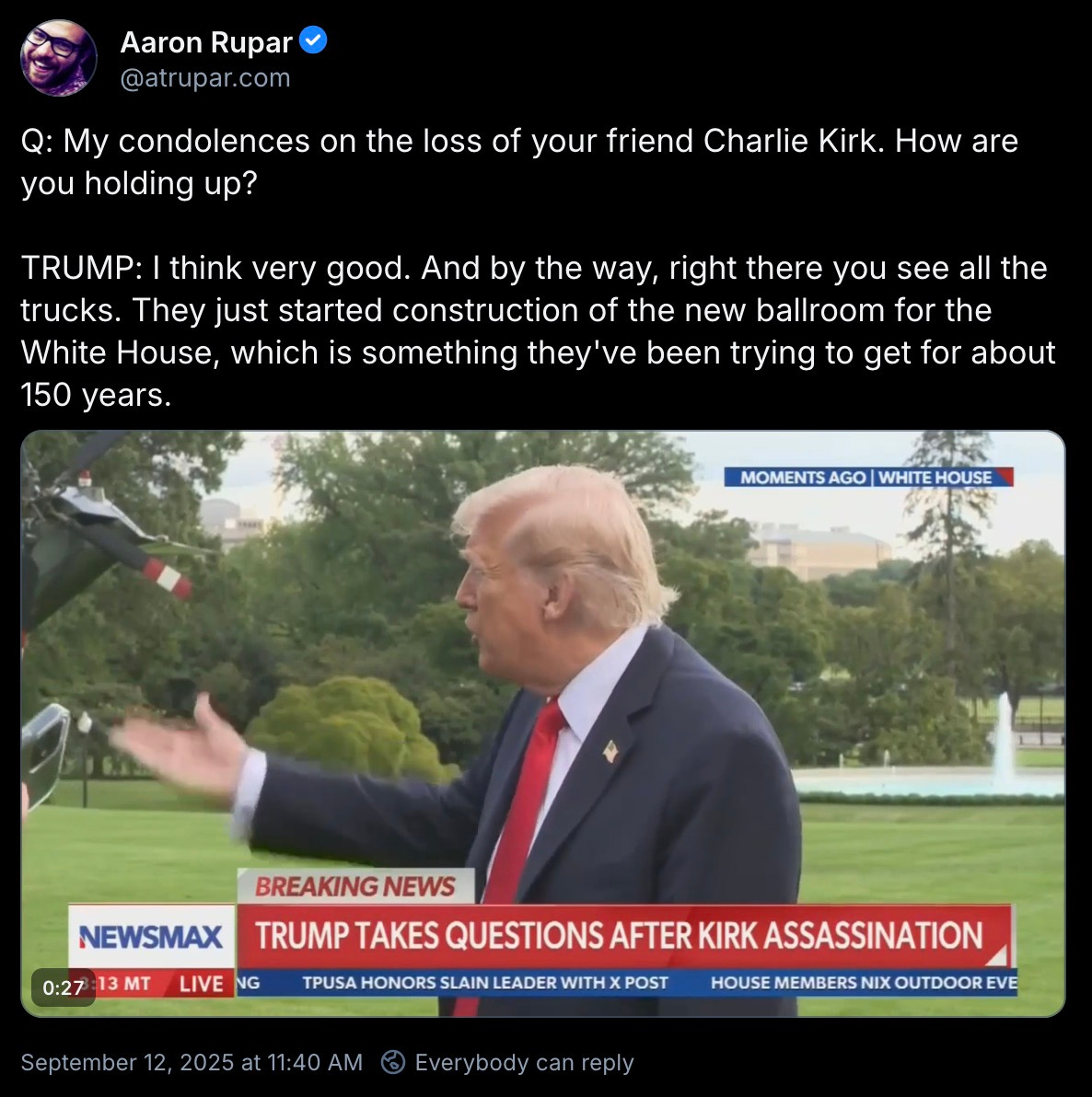 now, did you have ‘I’m better at ducking bullets than Charlie Kirk’ on your bingo card? congratulations, you’re our winner!