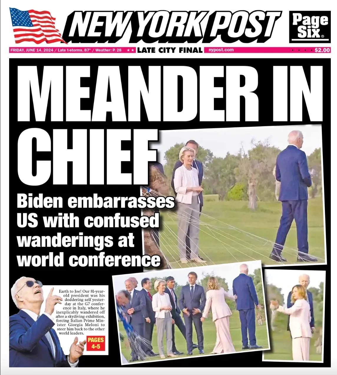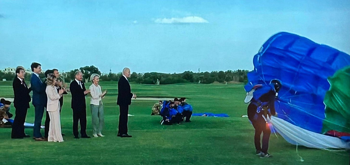 in June of 2024, Joe Biden attended a G7 meeting in Italy. the Republican National Committee’s official twitter account posted this clip of the G7 leaders taking in a skydiving exhibition.
