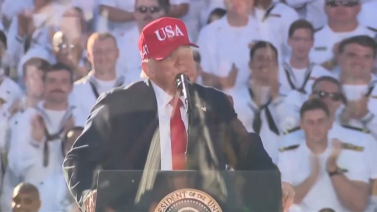 on Sunday, Donny’s handlers finally let the Mad King out of his hidey hole, so he could make a speech at the Norfolk Naval Station.