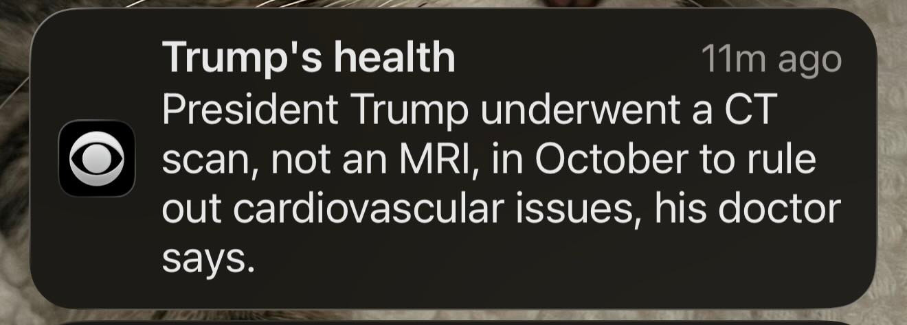 what in the actual fuck? after weeks of Donny and his flunkies telling us that he got an MRI, now it’s a CT scan? and even the doctor who released that farcical ‘summary’ about Donny’s MRI is now on board that it was a CT scan?
