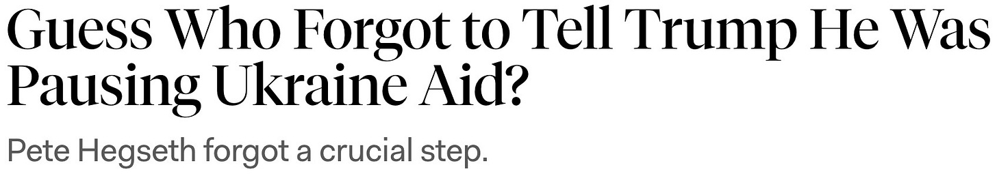 it’s been obvious for a while now that Piss-Drunk Pete Kegstand has been high on his own supply — and running his own show. a couple of months ago, he made a unilateral decision to shitcan aid to Ukraine — and he didn’t even bother to give Dear Leader so much as a courtesy head’s-up.