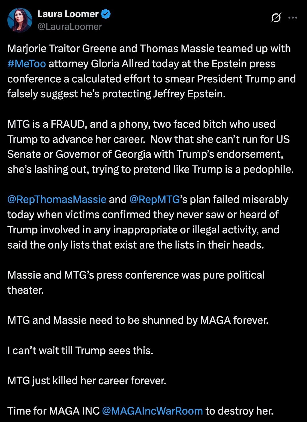 yesterday, one hundred Epstein survivors held a press conference at the Capitol, to tell their stories, with the hopes of shaming cowardly House Republicans into signing on to Tom Massie and Ro Khanna’s discharge petition, to bring their Epstein Files bill to a vote.