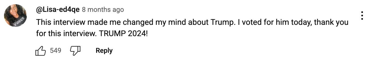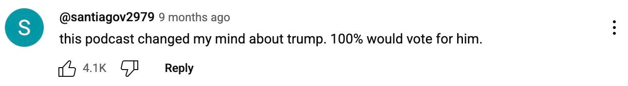 they didn’t just vote for Donny — during the campaign, they invited him onto their podcast and let him spew lie after lie, unchallenged, for a solid hour and a half.