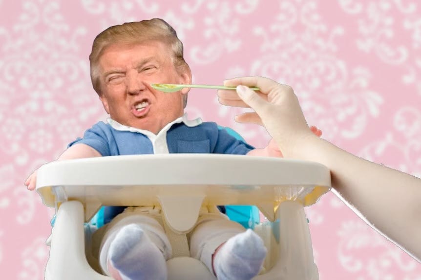 and then these big-strong, teary-eyed pollsters held the spoonful of pudding up to Donny’s mouth and said ‘zoom! zoom! open the hangar door, Mr. President, here comes the airplane.’