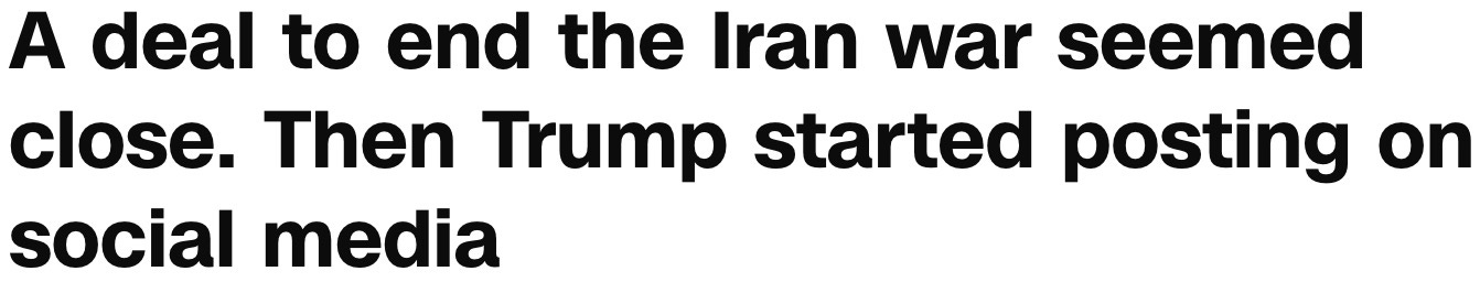 as unlikely as it may seem, somehow the Shitwit Brigade of Witkoff, Kushner and Couchfuck McGee were actually making headway — but then Preznit Fuckwit started posting once again about how he was going to bomb the shit out of Iran if they didn’t dance to his tune, at which point the Iranian negotiating team was all ‘why the fuck are we even talking to you?’