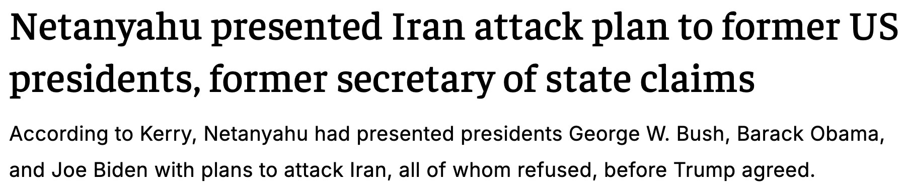 Bibi Netanyahu absolutely did goad Donny into his I-thought-we-weren’t-supposed-to-call-it-a-war on Iran. Bibi’s been trying to drag the US into an unwinnable Iranian quagmire for literal decades.