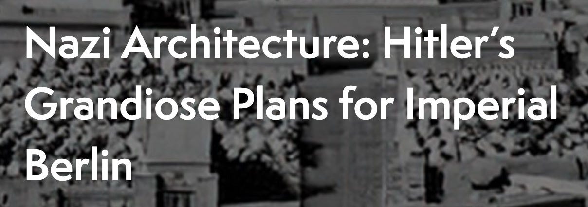 Hitler planned to establish Berlin, renamed as “Germania,” as the center of his thousand-year Third Reich. The Führer’s expansive fantasies of imperious, extravagantly scaled structures led directly to forced relocations and slave labor, resulting in, at minimum, tens of thousands of deaths.