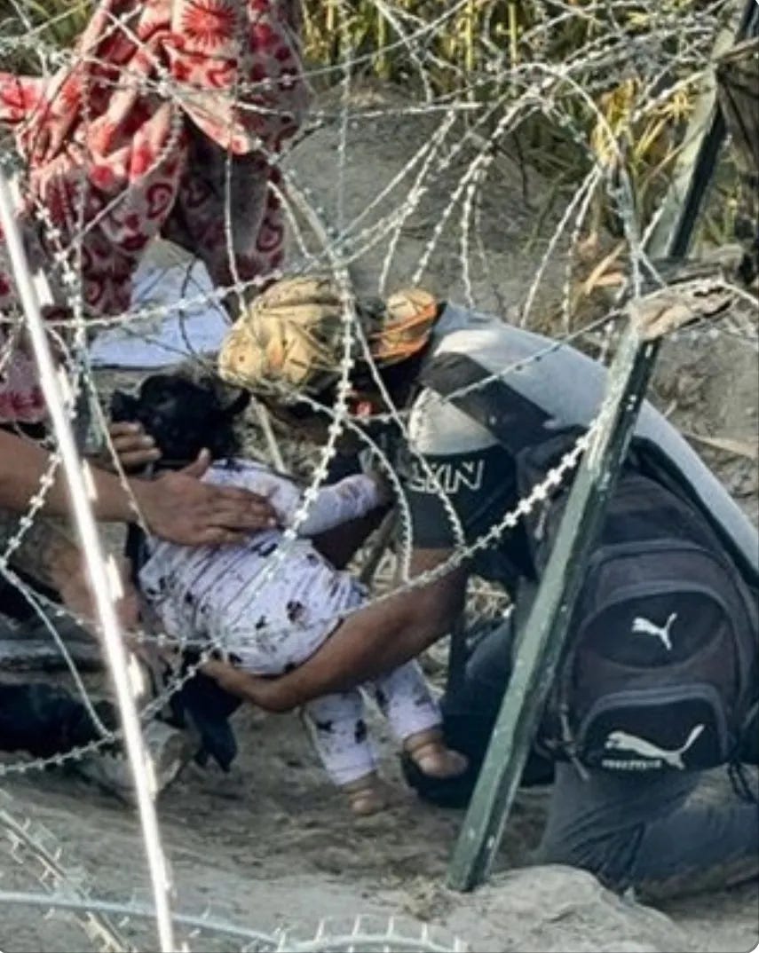 that’s Greg Fucking Abbott — the sadist who strung razor wire booby traps in the middle of the Rio Grande, to keep migrants from crossing into the US.