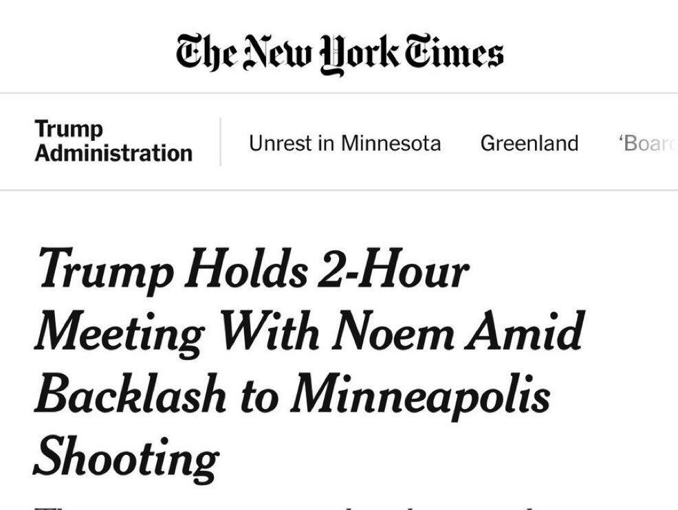 President Trump met Monday evening in the Oval Office with Kristi Noem, the homeland security secretary, and Corey Lewandowski, her top aide, for nearly two hours, as his administration tries to shift its strategy after federal agents killed a second Minneapolis resident over the weekend, according to two people briefed on the meeting.