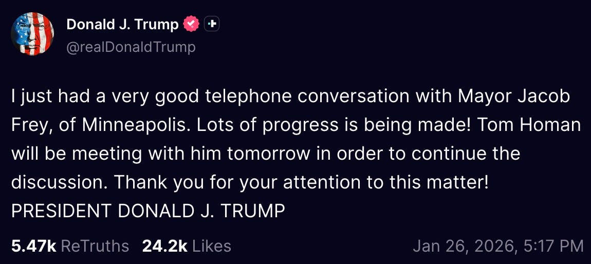 the occupation of Minneapolis was never about immigration. it was about a fragile, insecure Mad King hell-bent on proving he was an all-powerful dictator who could do whatever he wanted to, and that no one could stop him — and Americans coast to coast were all ‘yeah, no, go fuck yourself.’