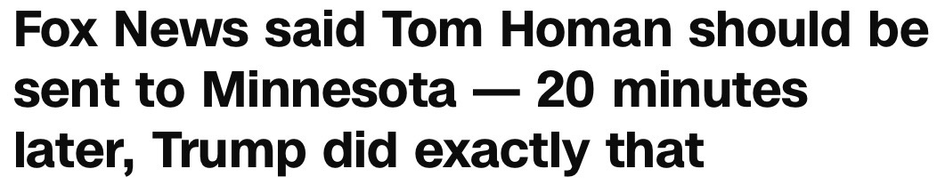 oh, and because we live in dumbfuckiest possible timeline, it seems that Donny got the idea to assign Homan to Minneapolis from the chattering pinheads on Fox&Friends.