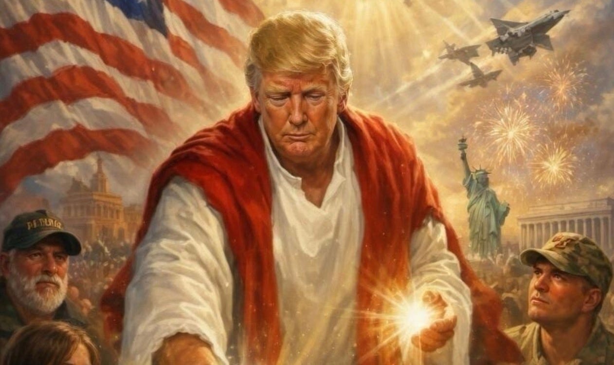 holy shit! Preznit Fuckwit depicts himself as Jesus, and MAGA actually melts down