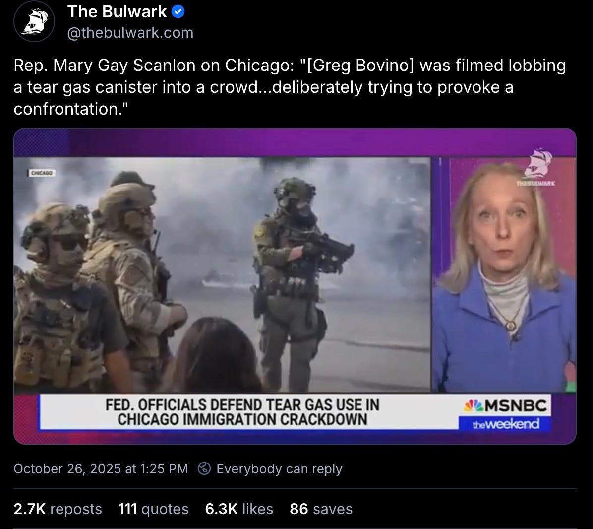 make no mistake, Bovino is a nasty piece of work. recently, he was filmed lobbing a teargas canister into a crowd of peaceful protesters.