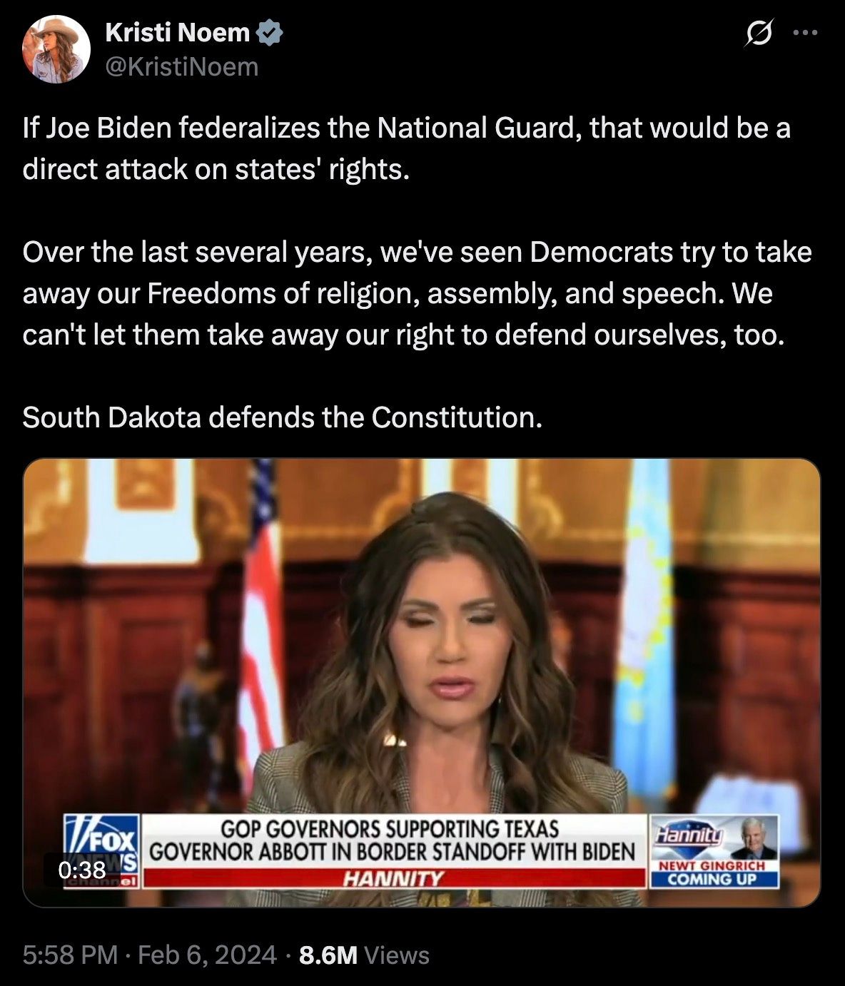 “If Joe Biden federalizes the National Guard, that would be a direct attack on states’ rights.”