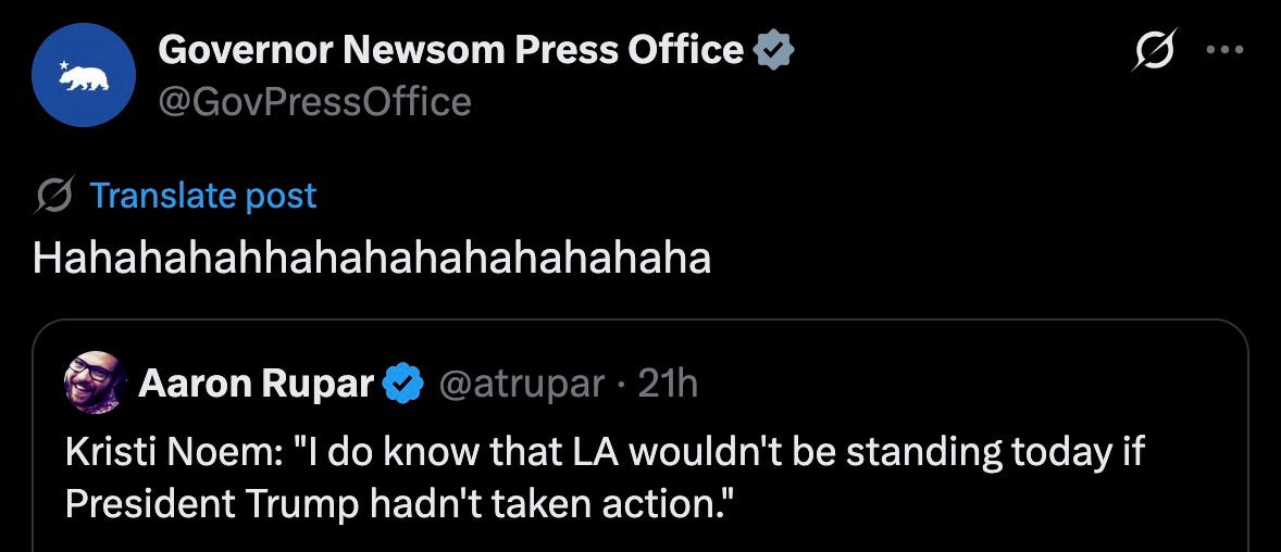 let’s saunter down memory lane, and review just what went on with the National Guard in Los Angeles — because the firehose of fuckery from these shitweasels is so unrelenting that it’s easy to forget what happened only three months ago.