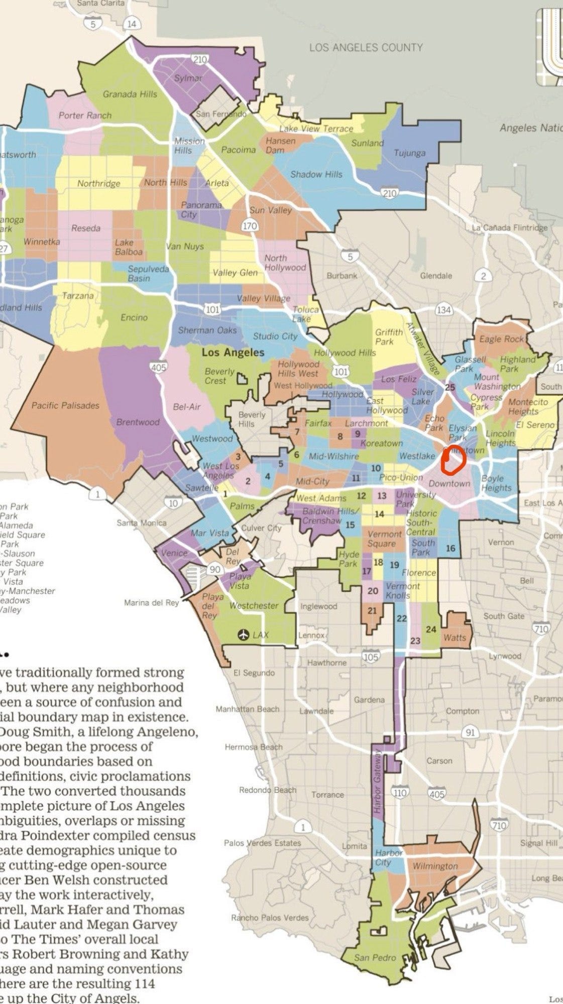 protesters then confronted ICE — and it cannot be over-stressed that the protests were confined to a microscopic section of LA (circled in red below):