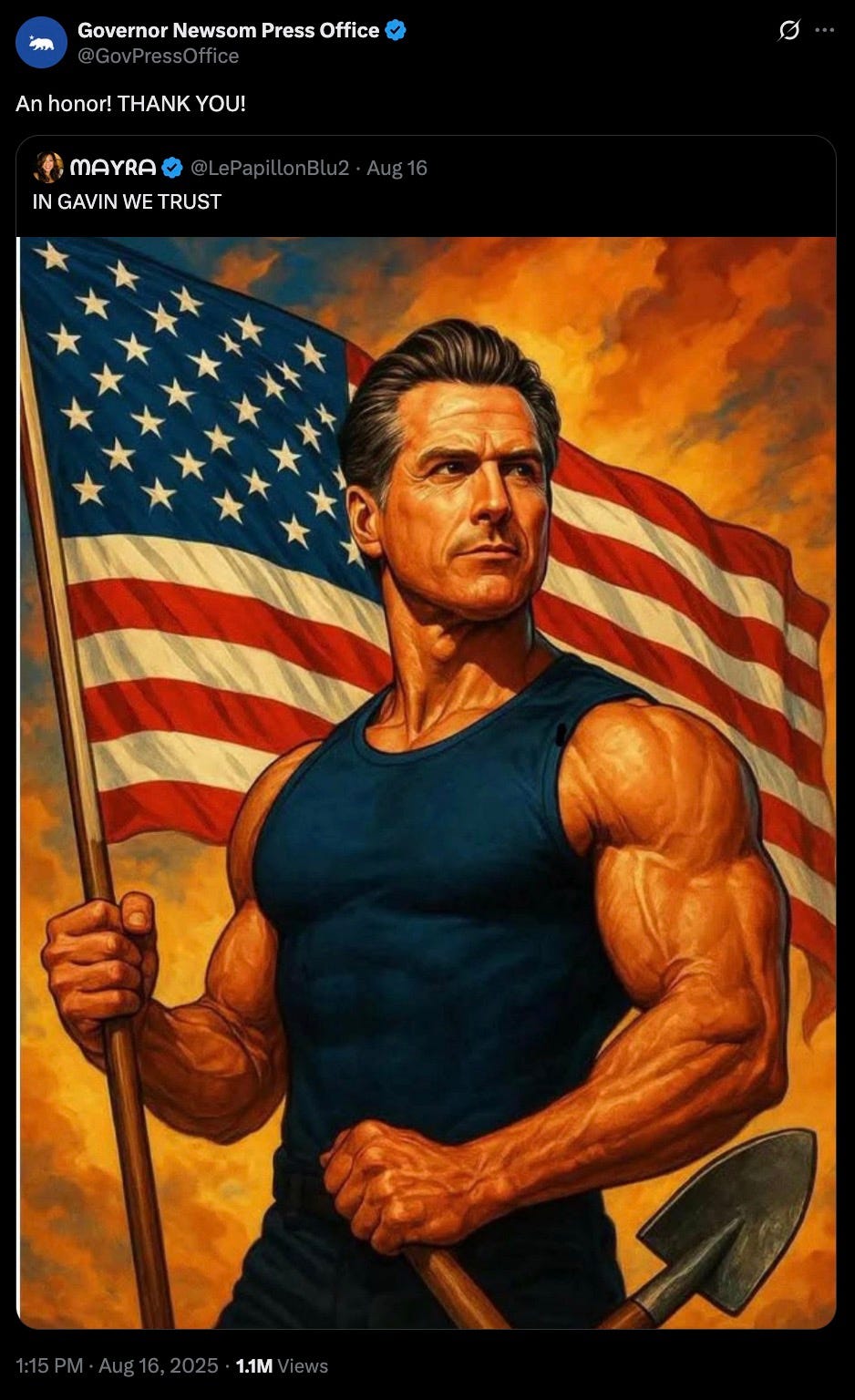 this is why what Gavin Newsom’s press office is doing is so brilliant. by imitating Donny’s unhinged social media style, they’re shining a big fucking spotlight on the fact that normal people don’t act like this.