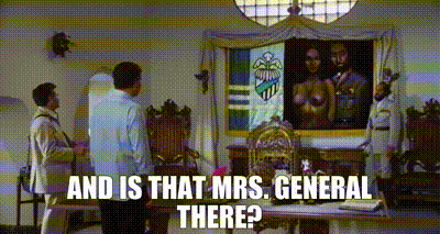 Donny has literally devolved into the insane dictator General Garcia from the film The In-Laws, proudly showing off his crazypants art collection.