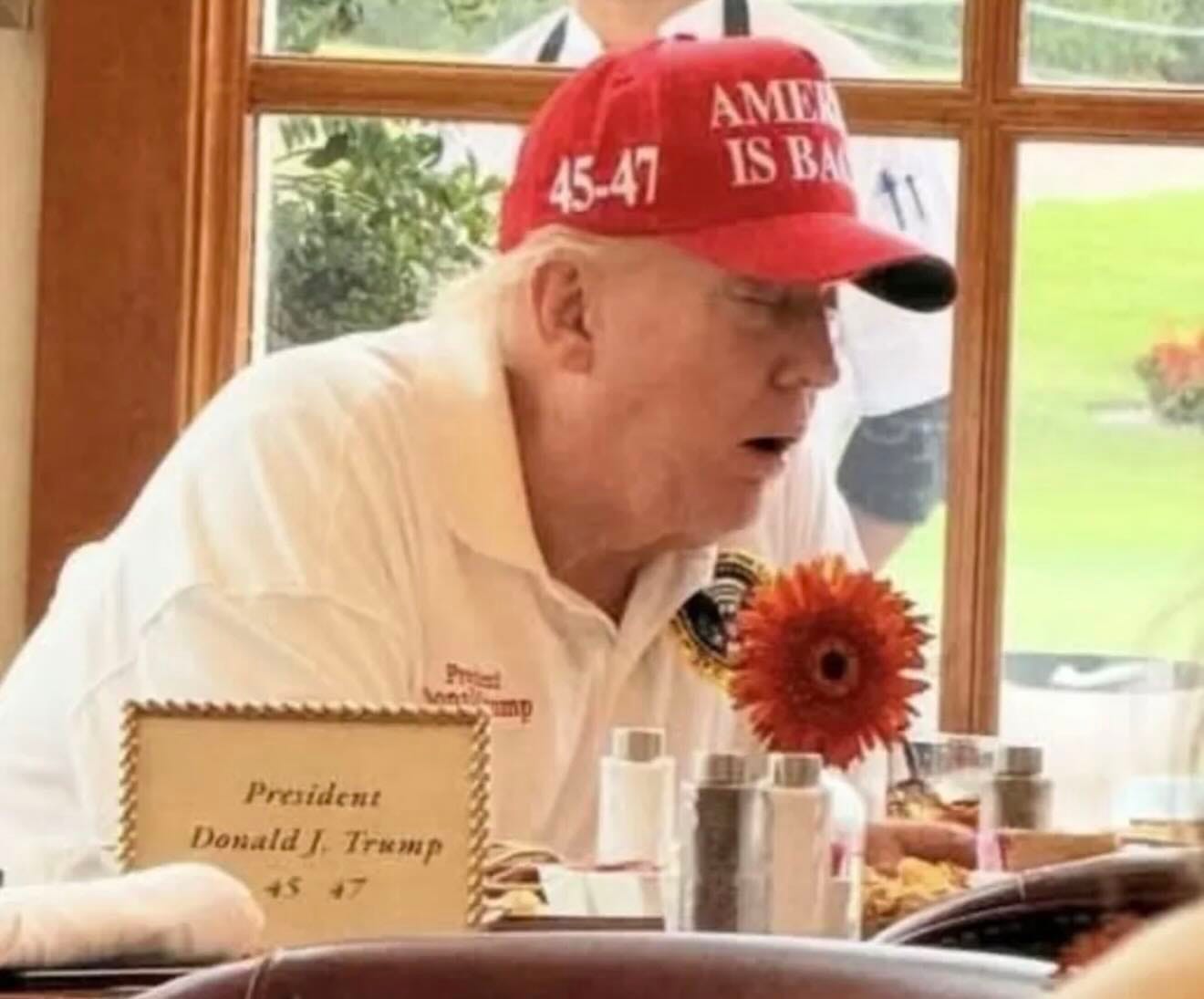now, here’s a super-fun — and unretouched — photo of Sundowning Grandpa Befuddlepants that was taken yesterday at his vermin-infested Florida golf motel.