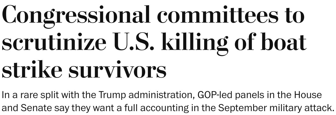 Republican-led committees in the Senate and the House say they will amplify their scrutiny of the Pentagon after a Washington Post report revealing that Defense Secretary Pete Hegseth gave a spoken order to kill all crew members aboard a vessel suspected of smuggling drugs in the Caribbean Sea several weeks ago.