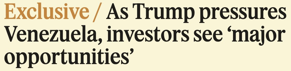 let’s finish up this sordid tale by circling back to Venezuela — because here’s the real reason that Donny’s so hot to take us to war in South America.