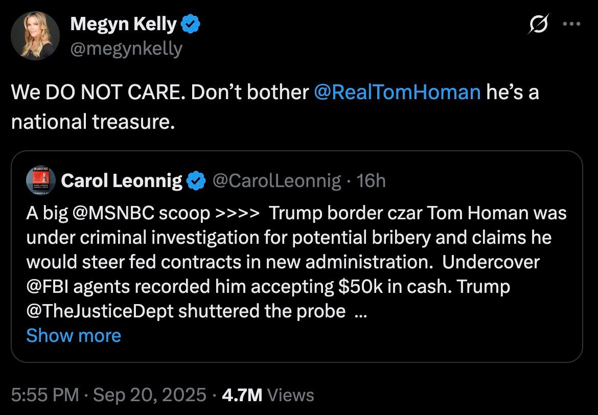 is Tom Homan accepting bags of cash wrong? that’s just, like, your opinion, man