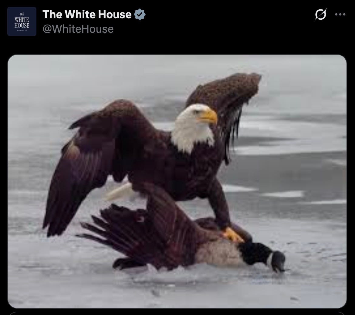 oh look, it’s a bald eagle menacing a Canada goose. get it? get it?