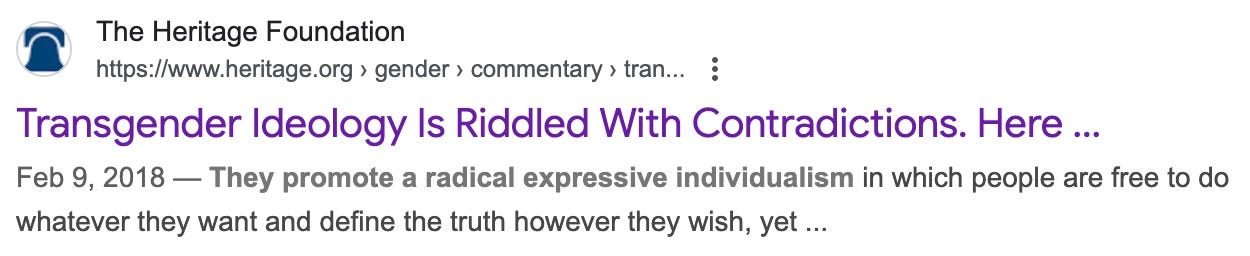 really, Heritage Foundation? ‘they promote a radical expressive individualism in which people are free to do whatever they want’?