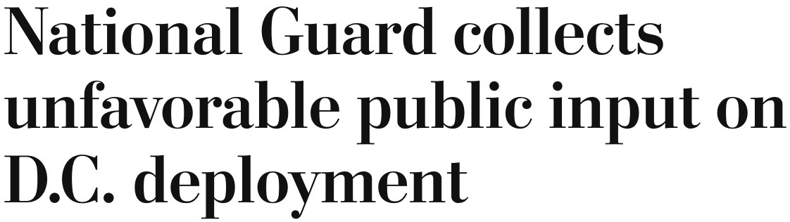 it seems the National Guard has been analyzing news reports and social media to get a sense of how DC residents feel about being forced to live under military occupation. spoiler alert: they fucking loathe that shit.