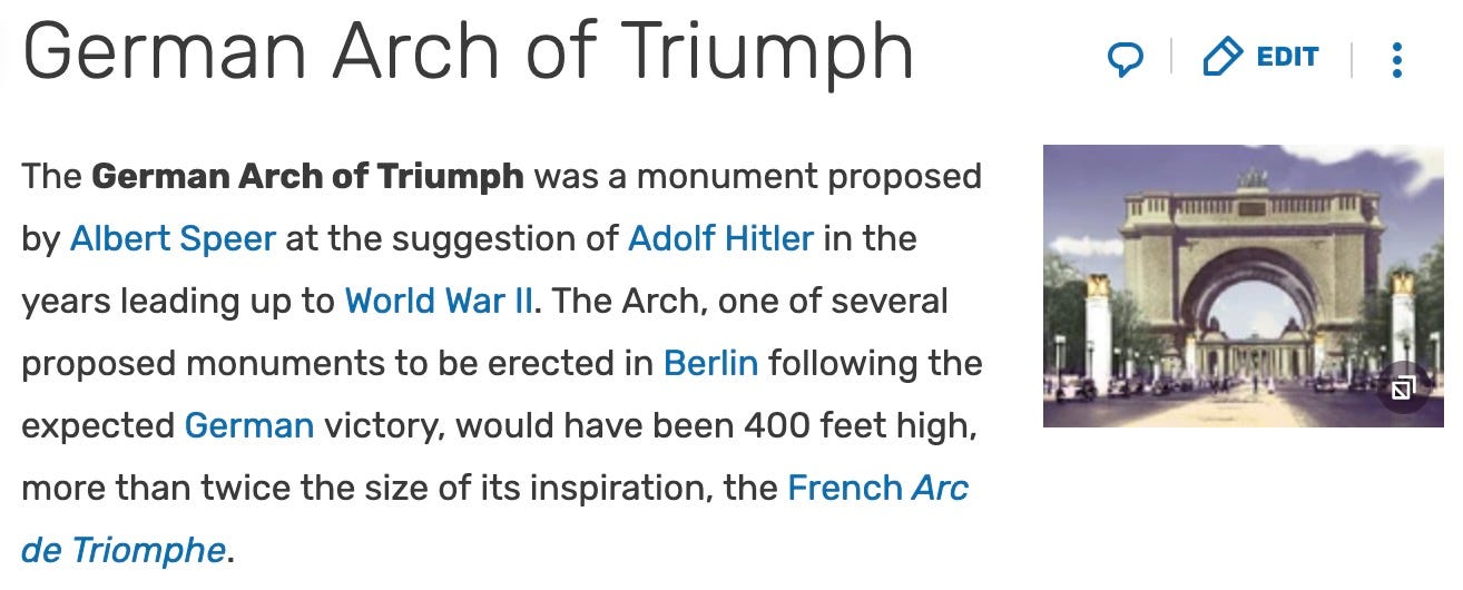 hey, you know who else wanted to build an arch of triumph to herald their fascistic grip on their country? of course you do.