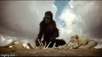 whoops, wrong clip. sorry. here you go, here’s President Hominid, mastering a new tool.