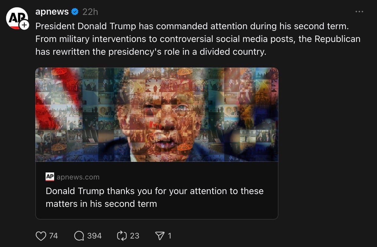 “President Donald Trump has commanded attention during his second term. From military interventions to controversial social media posts, the Republican has rewritten the presidency’s role in a divided country.”