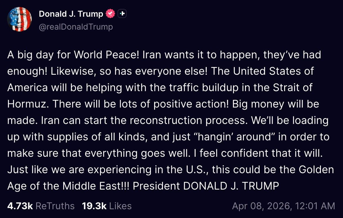 Donny blundered into an unwinnable war because his despot bestie Netanyahu goaded him into it, and his piss-drunk Secretary of Death convinced him that his warfighting warfighers would warfight the shit out of Iran, and it would be over in an afternoon. then, when it wasn’t, there was never any plan B beyond flushing billions of dollars down the toilet and clownfucking around until the Strait of Hormuz got shut down — and now, after backing himself into a corner, he’s forced to eat Iranian shit and agree to their terms for a ceasefire.