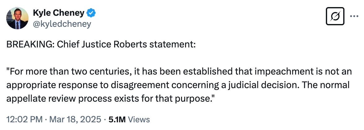 on the one hand, kudos to John Roberts — because it’s pretty extraordinary for a Chief Justice to rebuke a sitting president.