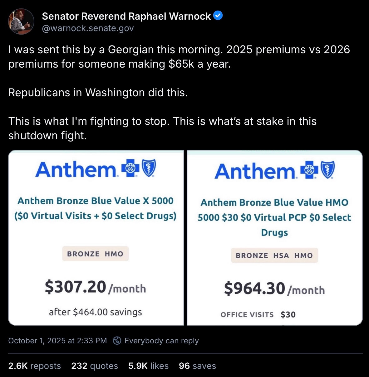 so here we are, 15 months and one election later — and now, all those Project 2025 chickens are beginning to come home to roost. Americans are just starting to learn that their health insurance premiums are about to double — or worse — once the Affordable Care Act subsidies get shitcanned at the end of this year.