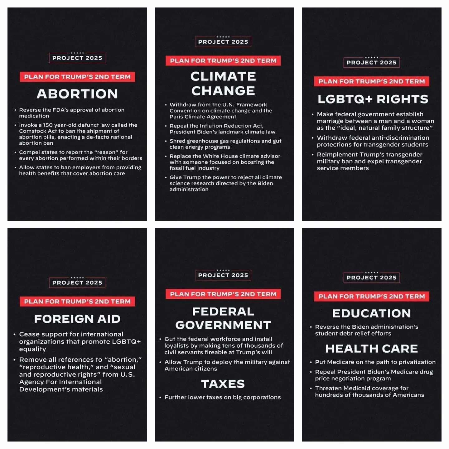 as the presidential campaign wore on, Project 2025 eventually became so toxic that the Heritage Foundation had to pretend to disband it, and Donny had to pretend to disavow it — and, quite maddeningly, the fuckers got away with it. here’s an excerpt from my July 31, 2024 post about Project 2025.