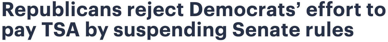 you’ll be shocked, I’m sure, to learn that Republicans keep blocking Democratic efforts to restore full funding to the TSA.