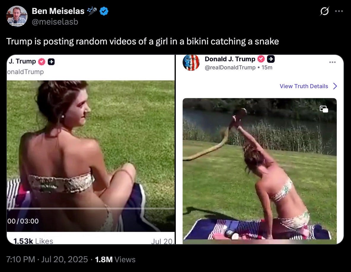 after whining about the Wall Street Journal, Captain Crazypants — in a desperate bid to not talk about Epstein — started posting random what-the-fuck videos.